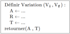 Exécuter cette traduction de l'algorithme en langage Python avec le valeurs données ci-dessous.