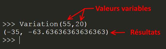 La Console correspond à l'écran de droite. On y lance les fonctions avec les valeurs désirées pour les variables et on y lit les résultats.