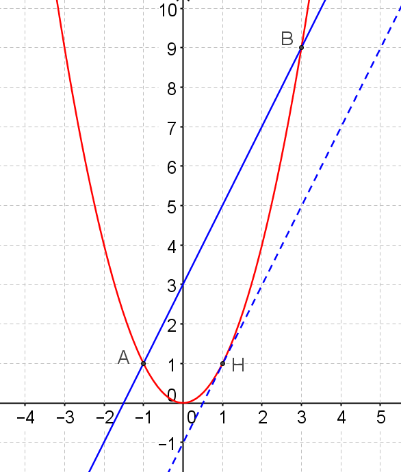 On considère les points \(A\) et \(B\) de \(\mathscr P\) d'abscisses respectives \(-1\) et \(3\).