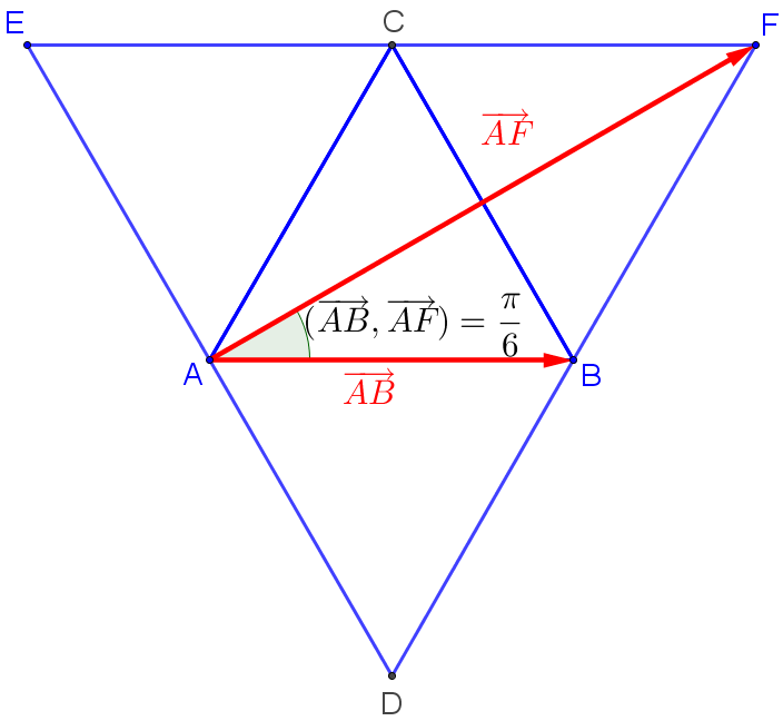 \((\overrightarrow{AB};\overrightarrow{AF})\color{red}\underline{~=\dfrac{\pi}{6}}\) (figure[1])