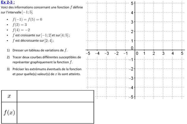 Objectif 2 : A partir d'un tableau de variations, proposer une courbe.