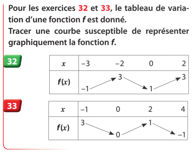 Objectif 2 : A partir d'un tableau de variations, proposer une courbe.